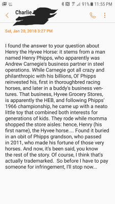 Curiosity piqued, I tore off on my search. And while I described his letter to me as one of the best things I’d read in some time, I can’t help but imagine him finding what follows, the strangest he’s probably gotten in some time. And now everything you never wanted to know about Henry, the Hyvee Horse: