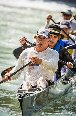 And much like the story you’re about to read, on the paddling faithful who set out each summer from the headwaters at the old Aquarena Springs, back in the days when Texas State was still somewhere in the Southwest, only to make the San Marcos/Guadalupe confluence just outside Gonzales. Because even the most determined, best trained and most prepared of racers has got to be just a tiny bit discouraged when they finally make it there, some 80 miles into the race, with every last muscle in their bodies surely screaming a dictionary of cusswords at them by then, only to realize that they ain’t even half done yet. In fact, the hardest stretch is still ahead. Either way, they know they’re in it now…